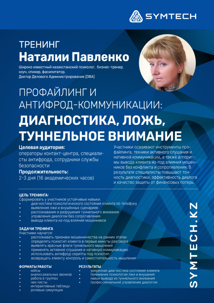Без категории _ 14 января, 2026_ admin_ 0 Comments Выводим клиента из под контроля мошенников — тренинг по профайлингу и антифрод-коммуникациям Authoradmin СОВРЕМЕННЫЕ АНТИФРОД-СИСТЕМЫ10 апреля, 2025
